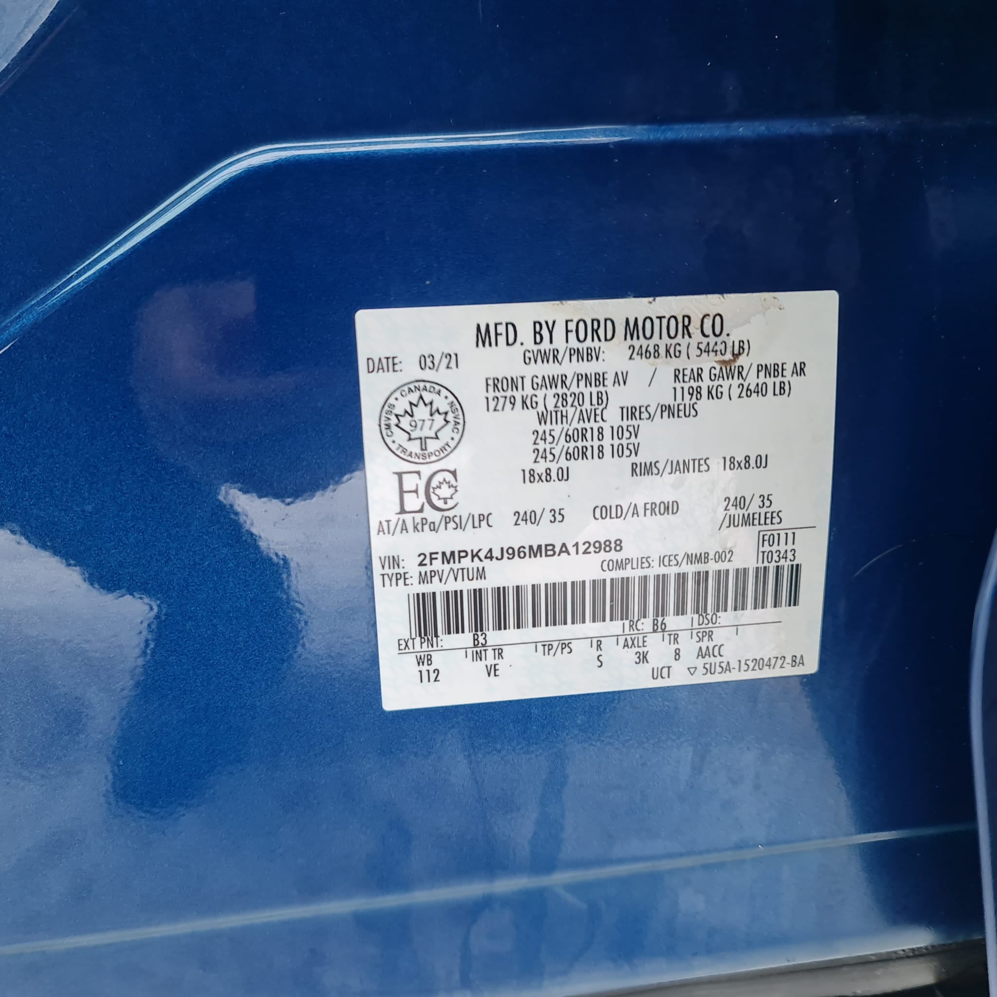 VIN: 2FMPK4J96MBA12988